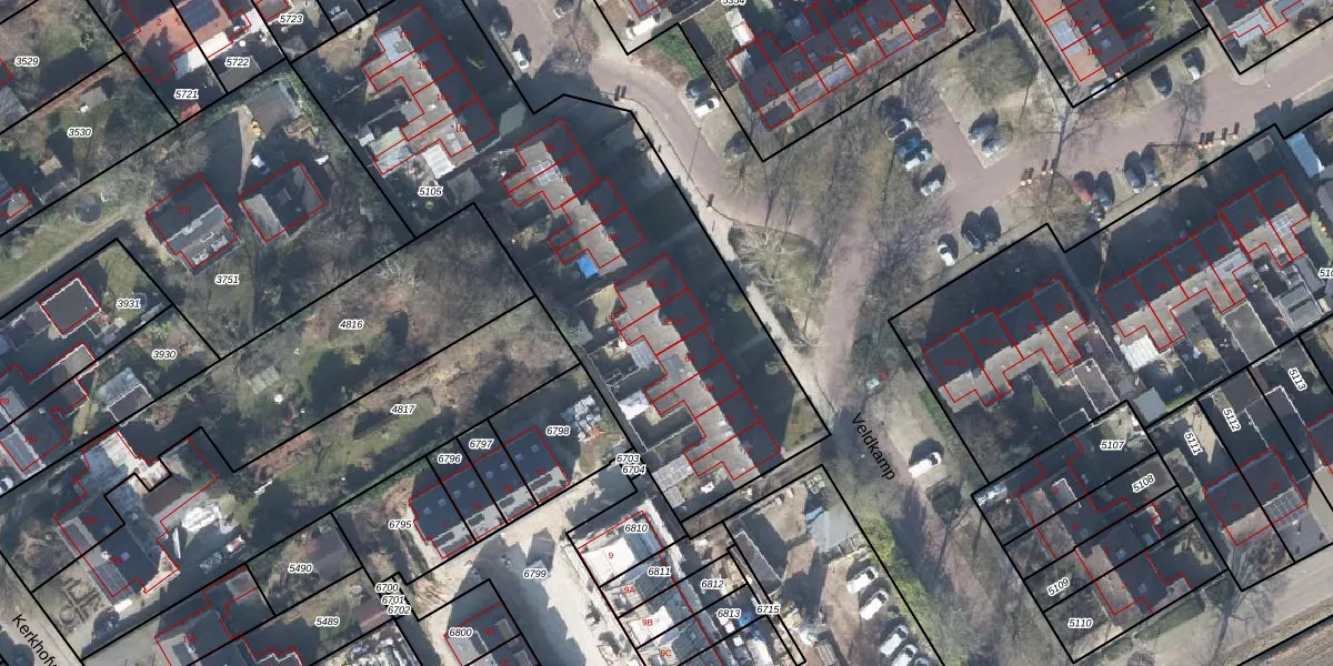 Het perceel waarop Veldkamp 87 staat heeft een oppervlakte van 2430 m². Dit is een zeer groot perceel. De perceeloppervlakte wordt geregistreerd door het Kadaster. Gedetailleerde informatie over de maten van dit perceel kunt u vinden in het rapport Kadastrale kaart met maatvoering van Veldkamp 87.