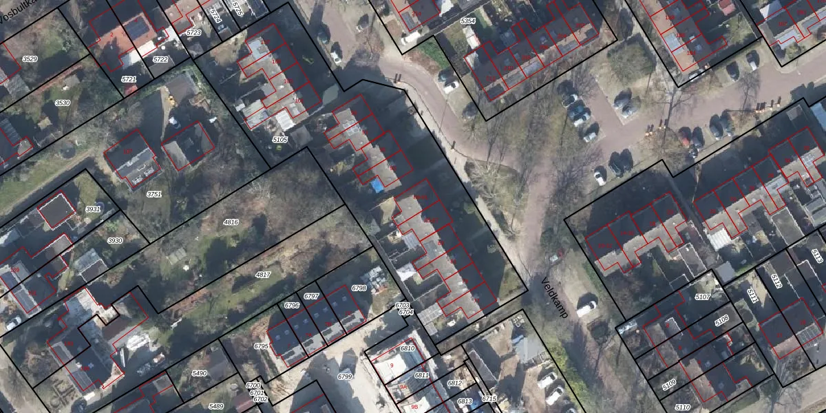Het perceel waarop Veldkamp 89 staat heeft een oppervlakte van 2430 m². Dit is een zeer groot perceel. De perceeloppervlakte wordt geregistreerd door het Kadaster. Gedetailleerde informatie over de maten van dit perceel kunt u vinden in het rapport Kadastrale kaart met maatvoering van Veldkamp 89.