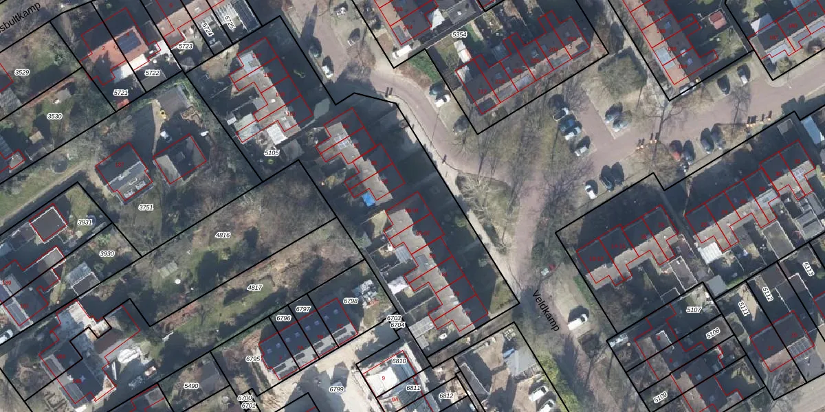 Het perceel waarop Veldkamp 91 staat heeft een oppervlakte van 2430 m². Dit is een zeer groot perceel. De perceeloppervlakte wordt geregistreerd door het Kadaster. Gedetailleerde informatie over de maten van dit perceel kunt u vinden in het rapport Kadastrale kaart met maatvoering van Veldkamp 91.