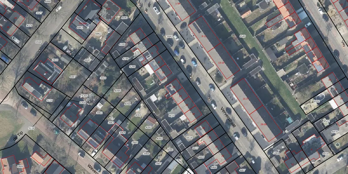 Het perceel waarop Ververstraat 12 staat heeft een oppervlakte van 1258 m². Dit is een zeer groot perceel. De perceeloppervlakte wordt geregistreerd door het Kadaster. Gedetailleerde informatie over de maten van dit perceel kunt u vinden in het rapport Kadastrale kaart met maatvoering van Ververstraat 12.