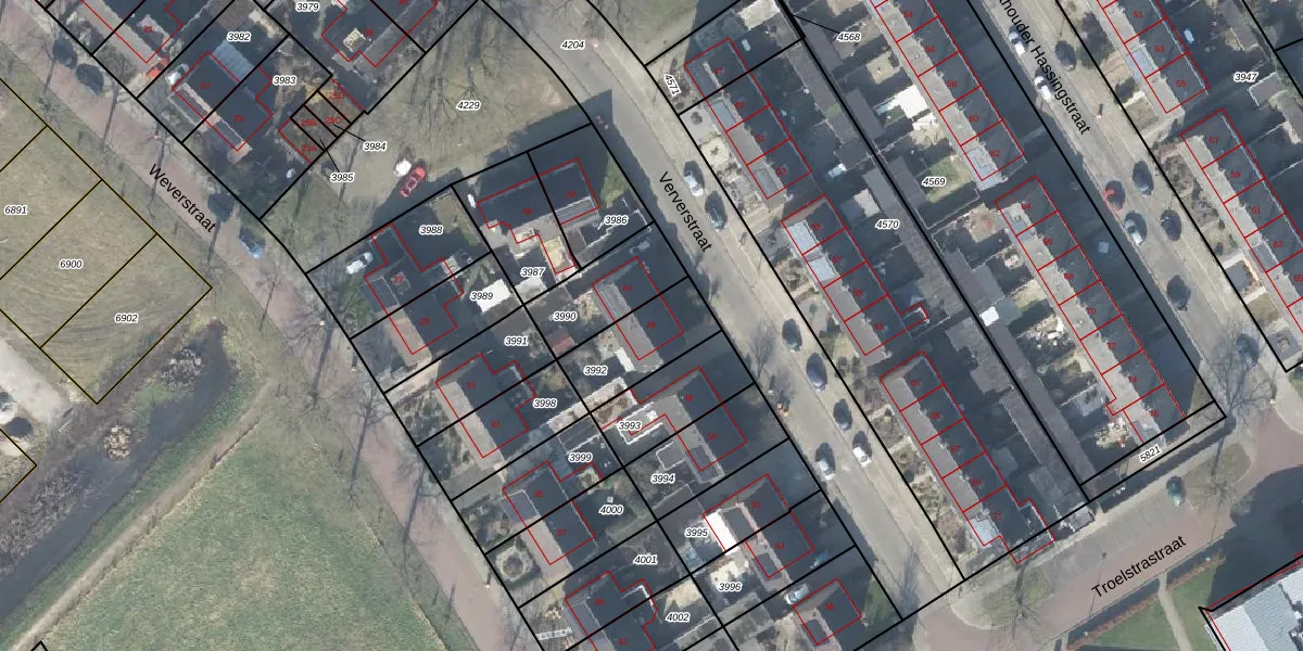 Het perceel waarop Ververstraat 46 staat heeft een oppervlakte van 233 m². Dit is een middelgroot perceel. De perceeloppervlakte wordt geregistreerd door het Kadaster. Gedetailleerde informatie over de maten van dit perceel kunt u vinden in het rapport Kadastrale kaart met maatvoering van Ververstraat 46.