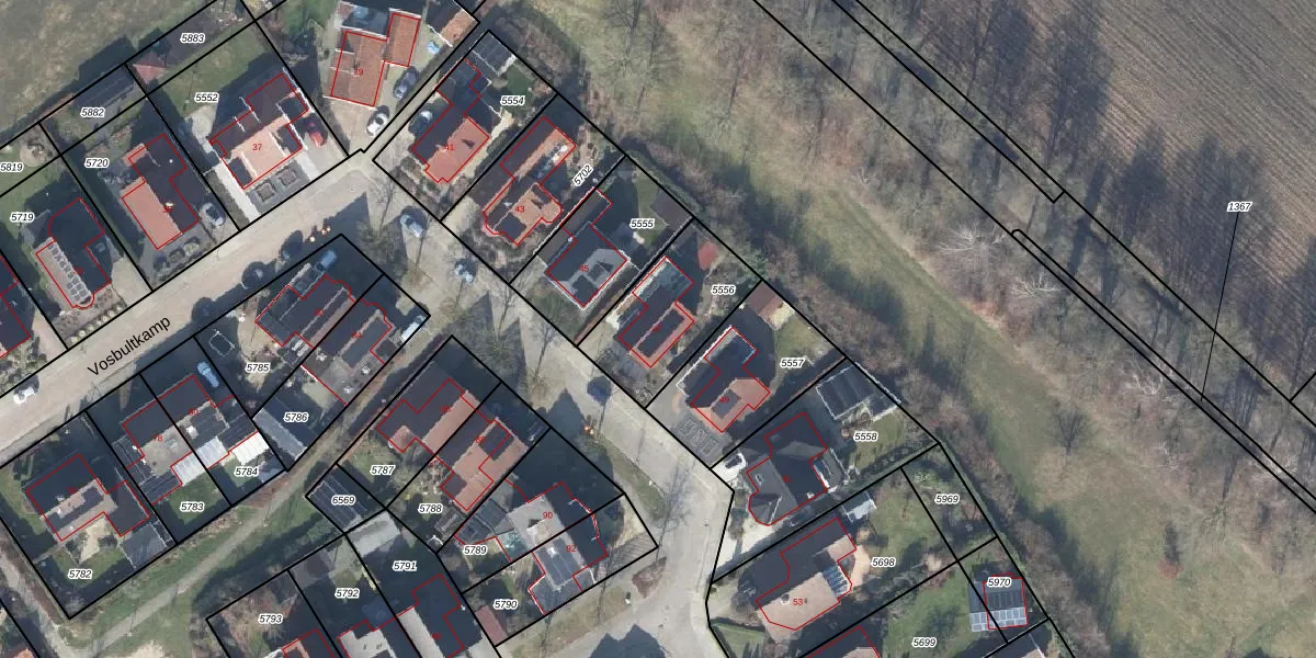 Vosbultkamp 47 is gelegen op kadastraal perceel LSR00K5556. Deze kadastrale aanduiding is uniek en wordt gebruikt door het Kadaster om eigendomsrechten en andere zakelijke rechten vast te leggen. Het perceel maakt onderdeel uit van de kadastrale gemeente Losser.