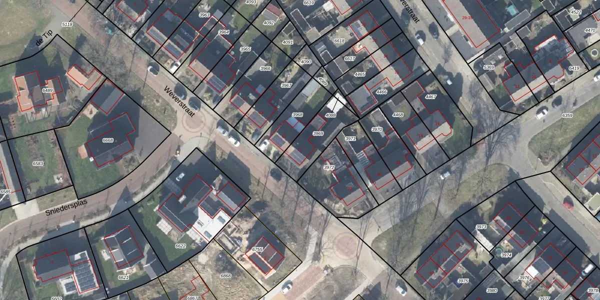 Het perceel waarop Weverstraat 17 staat heeft een oppervlakte van 294 m². Dit is een middelgroot perceel. De perceeloppervlakte wordt geregistreerd door het Kadaster. Gedetailleerde informatie over de maten van dit perceel kunt u vinden in het rapport Kadastrale kaart met maatvoering van Weverstraat 17.