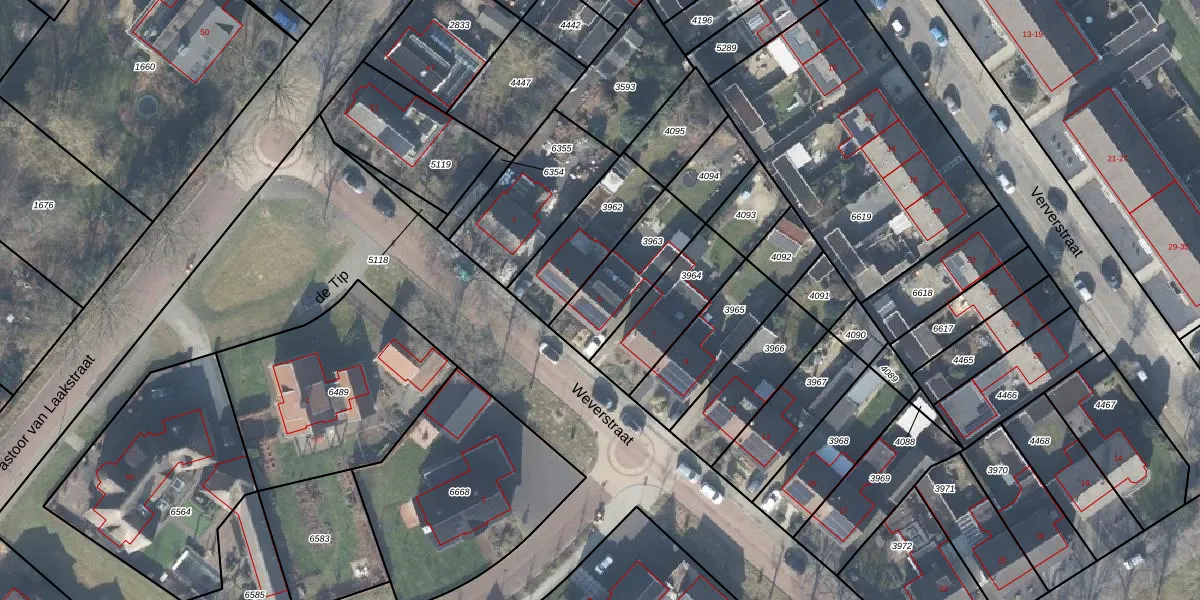 Weverstraat 5 is gelegen op kadastraal perceel LSR00K3963. Deze kadastrale aanduiding is uniek en wordt gebruikt door het Kadaster om eigendomsrechten en andere zakelijke rechten vast te leggen. Het perceel maakt onderdeel uit van de kadastrale gemeente Losser.