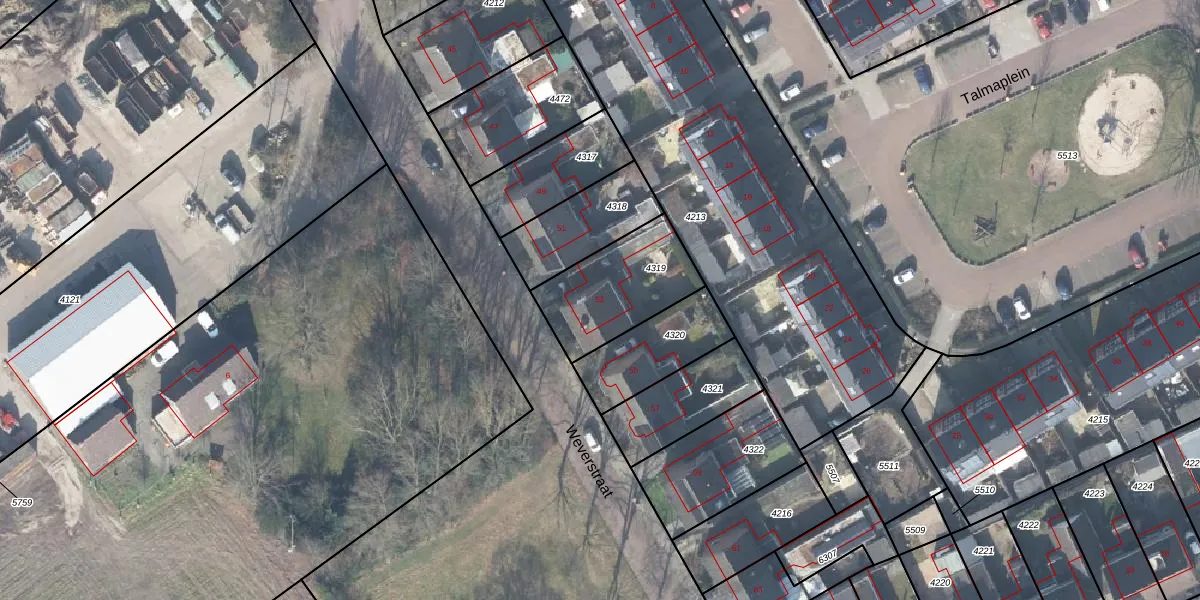 Het perceel waarop Weverstraat 53 staat heeft een oppervlakte van 362 m². Dit is een groot perceel. De perceeloppervlakte wordt geregistreerd door het Kadaster. Gedetailleerde informatie over de maten van dit perceel kunt u vinden in het rapport Kadastrale kaart met maatvoering van Weverstraat 53.