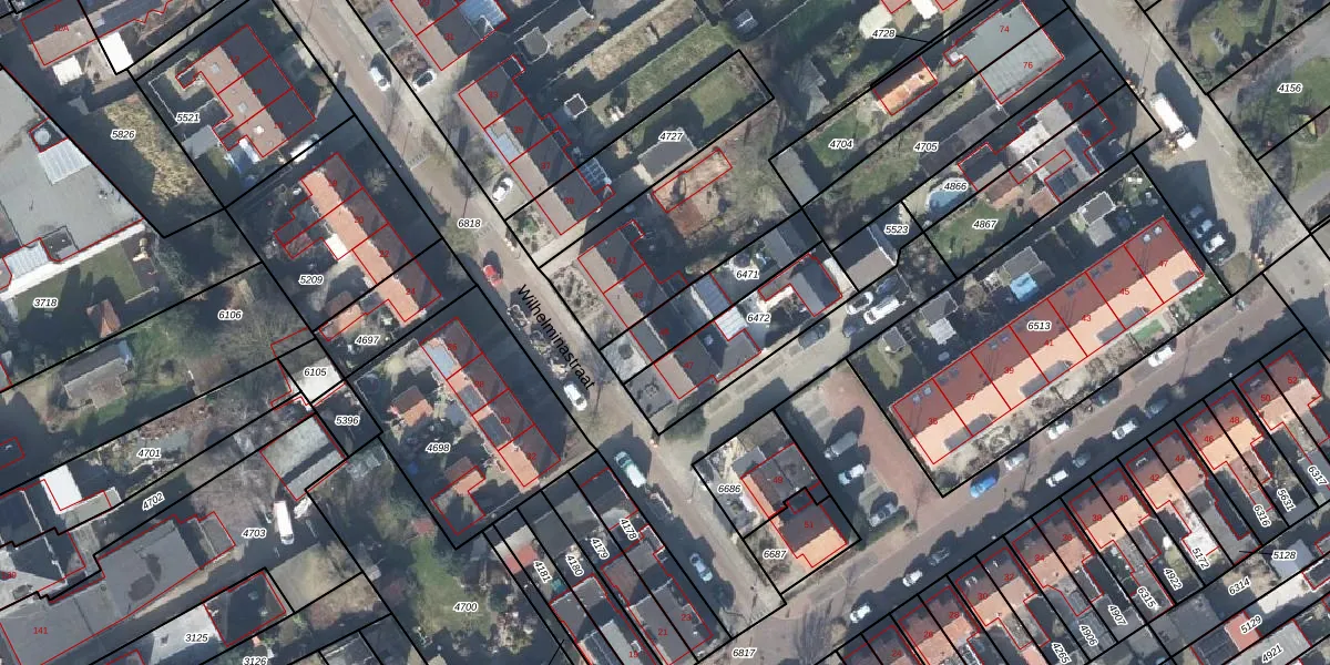 Het perceel waarop Wilhelminastraat 45 staat heeft een oppervlakte van 230 m². Dit is een middelgroot perceel. De perceeloppervlakte wordt geregistreerd door het Kadaster. Gedetailleerde informatie over de maten van dit perceel kunt u vinden in het rapport Kadastrale kaart met maatvoering van Wilhelminastraat 45.