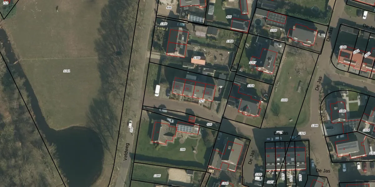 De Jas 15 is gelegen op kadastraal perceel RVS00E527. Deze kadastrale aanduiding is uniek en wordt gebruikt door het Kadaster om eigendomsrechten en andere zakelijke rechten vast te leggen. Het perceel maakt onderdeel uit van de kadastrale gemeente Ravenstein.