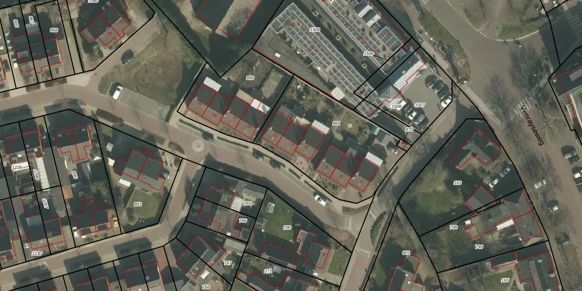 Het adres ligt op het perceel VLB00-I-869, dat zich in de kadastrale gemeente Vierlingsbeek bevindt. Het perceel is 1233 m² groot. Dat is kleiner dan de gemiddelde perceeloppervlakte in Vierlingsbeek, dat op 7844,72 m² ligt. Het kleinste perceel in de kadastrale gemeente is 0 m² groot. De grootste perceeloppervlakte is 1,01 km². Op het perceel zijn 6 adressen aanwezig. De huidige grenzen van het perceel zijn digitaal in de Basisregistratie Kadaster (BRK) geregistreerd op 05-03-2010.
