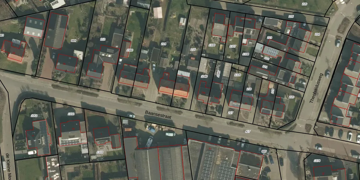 Het perceel waarop Baansestraat 16 staat heeft een oppervlakte van 636 m². Dit is een groot perceel. De perceeloppervlakte wordt geregistreerd door het Kadaster. Gedetailleerde informatie over de maten van dit perceel kunt u vinden in het rapport Kadastrale kaart met maatvoering van Baansestraat 16.