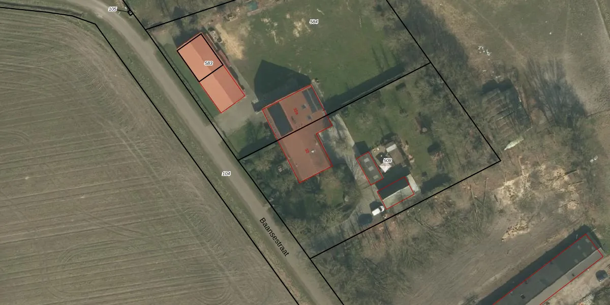 Het perceel waarop Baansestraat 32 staat heeft een oppervlakte van 2773 m². Dit is een zeer groot perceel. De perceeloppervlakte wordt geregistreerd door het Kadaster. Gedetailleerde informatie over de maten van dit perceel kunt u vinden in het rapport Kadastrale kaart met maatvoering van Baansestraat 32.