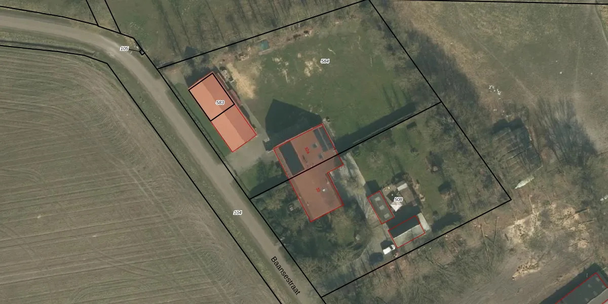 Het perceel waarop Baansestraat 32-a staat heeft een oppervlakte van 3143 m². Dit is een zeer groot perceel. De perceeloppervlakte wordt geregistreerd door het Kadaster. Gedetailleerde informatie over de maten van dit perceel kunt u vinden in het rapport Kadastrale kaart met maatvoering van Baansestraat 32-a.