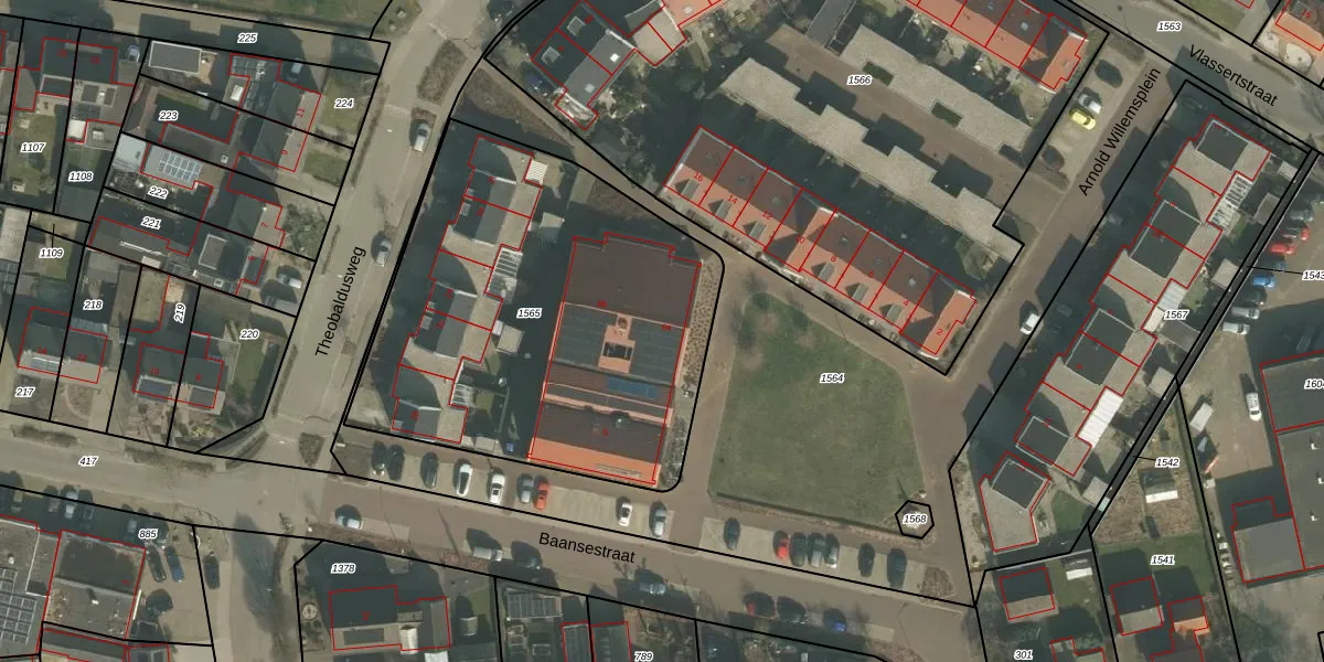 Het perceel waarop Baansestraat 6-a staat heeft een oppervlakte van 2125 m². Dit is een zeer groot perceel. De perceeloppervlakte wordt geregistreerd door het Kadaster. Gedetailleerde informatie over de maten van dit perceel kunt u vinden in het rapport Kadastrale kaart met maatvoering van Baansestraat 6-a.