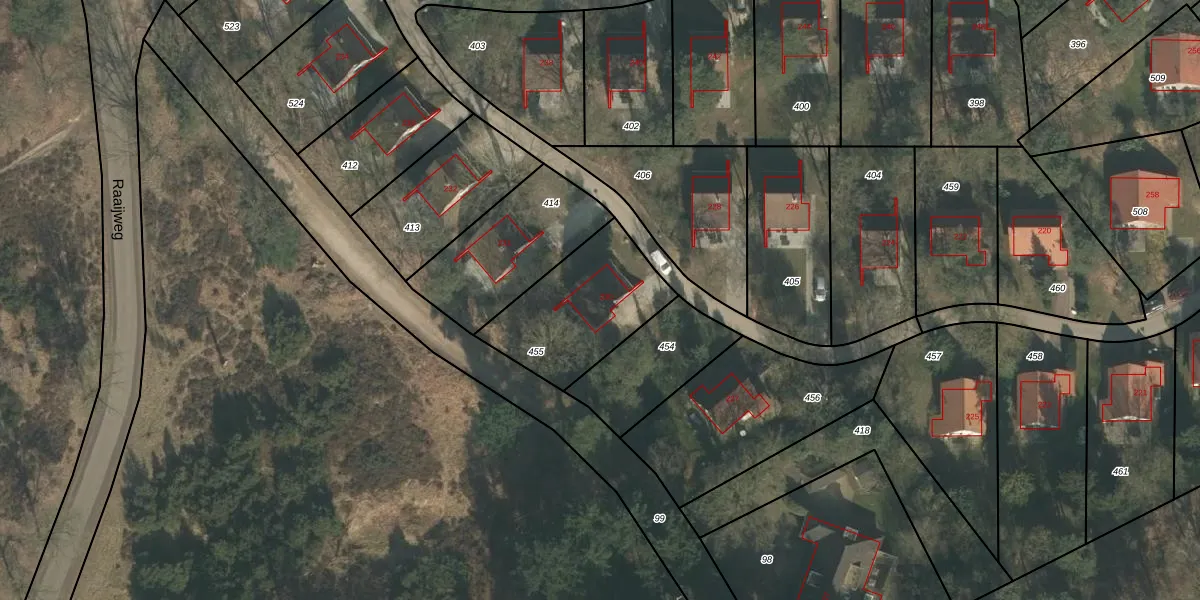 Het adres ligt op het perceel VLB00-Q-455, dat zich in de kadastrale gemeente Vierlingsbeek bevindt. De gemiddelde perceelgrootte in Vierlingsbeek is 7844,72 m². Dit perceel is kleiner: de perceeloppervlakte bedraagt 464 m². Het kleinste perceel in de kadastrale gemeente is 0 m² groot. De grootste perceeloppervlakte is 1,01 km². Dit is het enige adres dat aanwezig is op het perceel. In de Basisregistratie Kadaster (BRK) werden de grenzen van het perceel geregistreerd op 08-12-2008.