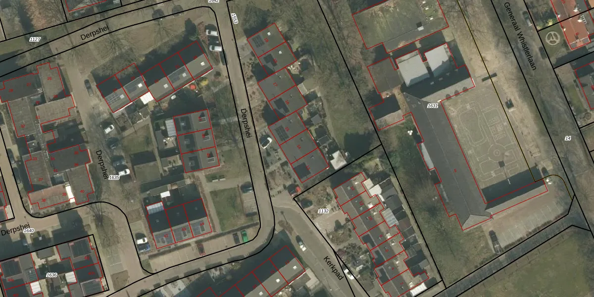 Het perceel waarop Derpshei 14 staat heeft een oppervlakte van 6102 m². Dit is een zeer groot perceel. De perceeloppervlakte wordt geregistreerd door het Kadaster. Gedetailleerde informatie over de maten van dit perceel kunt u vinden in het rapport Kadastrale kaart met maatvoering van Derpshei 14.