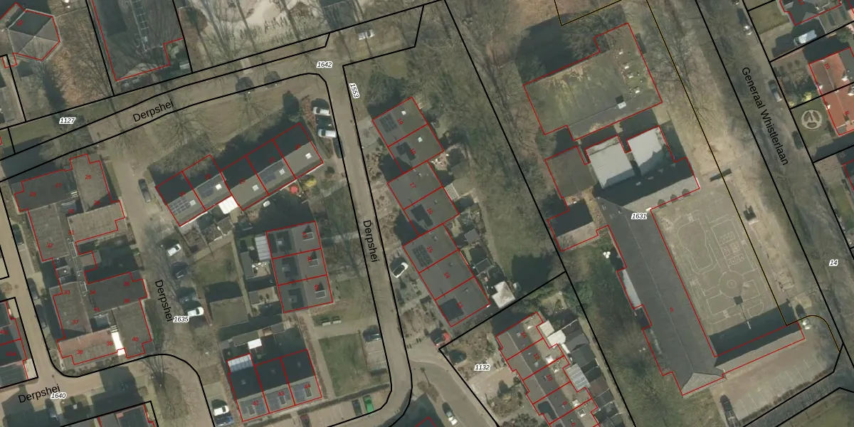Het perceel waarop Derpshei 16 staat heeft een oppervlakte van 6102 m². Dit is een zeer groot perceel. De perceeloppervlakte wordt geregistreerd door het Kadaster. Gedetailleerde informatie over de maten van dit perceel kunt u vinden in het rapport Kadastrale kaart met maatvoering van Derpshei 16.