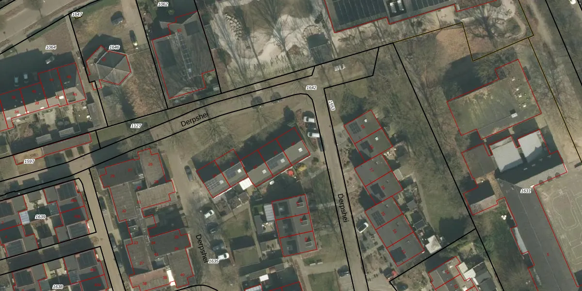 Het perceel waarop Derpshei 20 staat heeft een oppervlakte van 5321 m². Dit is een zeer groot perceel. De perceeloppervlakte wordt geregistreerd door het Kadaster. Gedetailleerde informatie over de maten van dit perceel kunt u vinden in het rapport Kadastrale kaart met maatvoering van Derpshei 20.