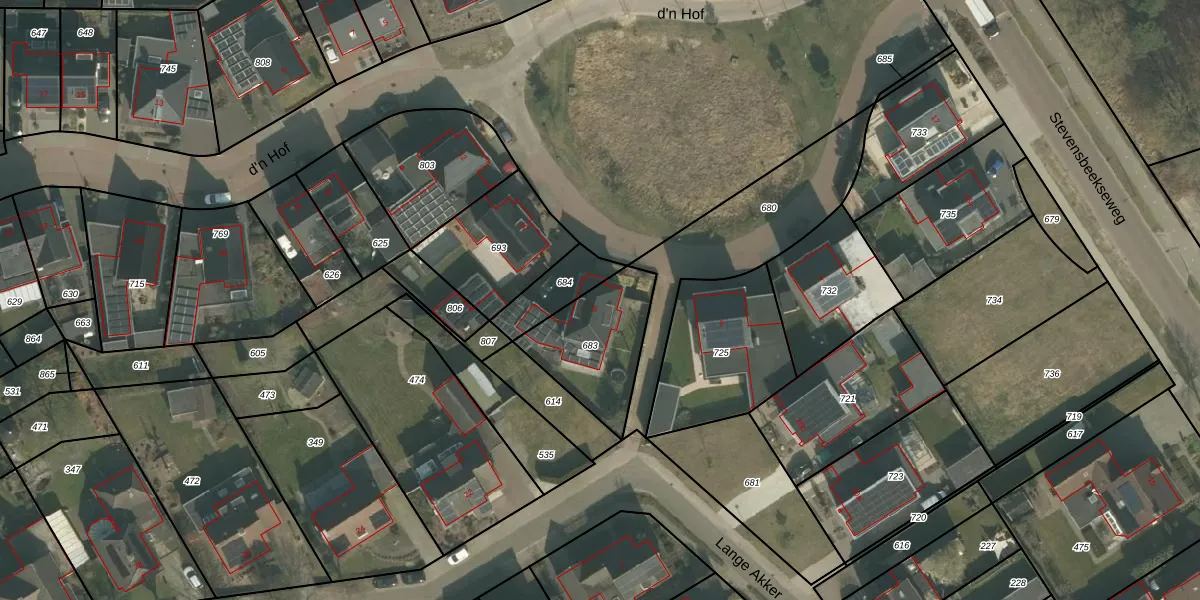 d'n Hof 8 is gelegen op kadastraal perceel VLB00S683. Deze kadastrale aanduiding is uniek en wordt gebruikt door het Kadaster om eigendomsrechten en andere zakelijke rechten vast te leggen. Het perceel maakt onderdeel uit van de kadastrale gemeente Vierlingsbeek.