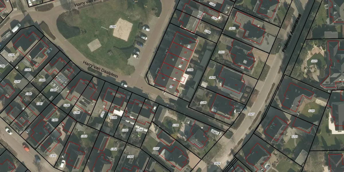 Het perceel waarop Harry van Daalplein 31 staat heeft een oppervlakte van 1120 m². Dit is een zeer groot perceel. De perceeloppervlakte wordt geregistreerd door het Kadaster. Gedetailleerde informatie over de maten van dit perceel kunt u vinden in het rapport Kadastrale kaart met maatvoering van Harry van Daalplein 31.