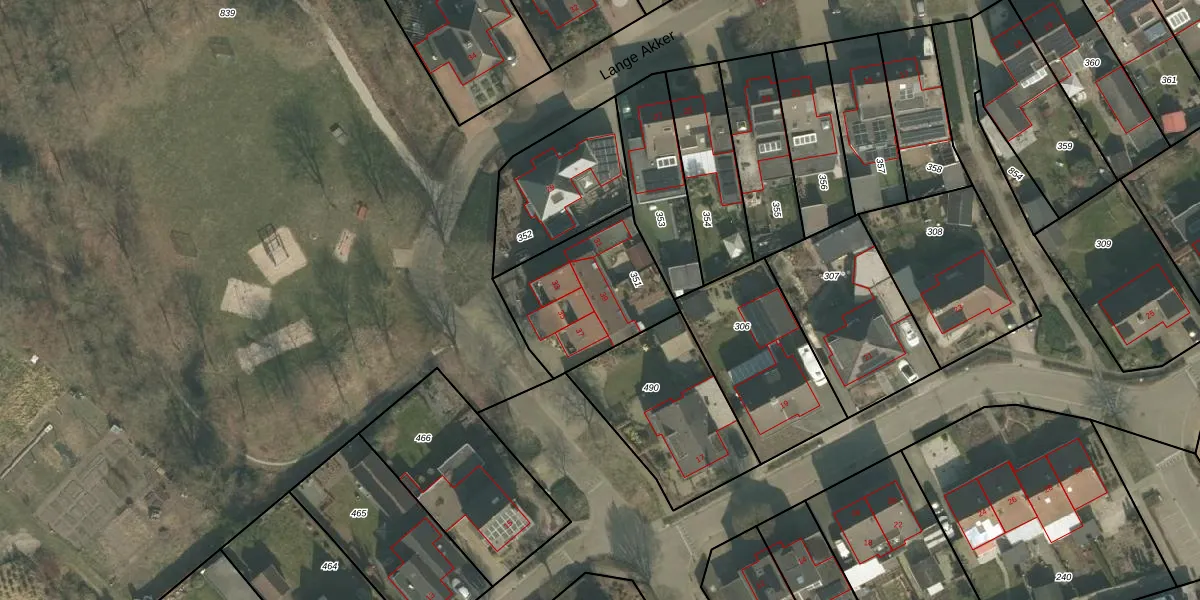 Het perceel waarop Lange Akker 39 staat heeft een oppervlakte van 489 m². Dit is een groot perceel. De perceeloppervlakte wordt geregistreerd door het Kadaster. Gedetailleerde informatie over de maten van dit perceel kunt u vinden in het rapport Kadastrale kaart met maatvoering van Lange Akker 39.