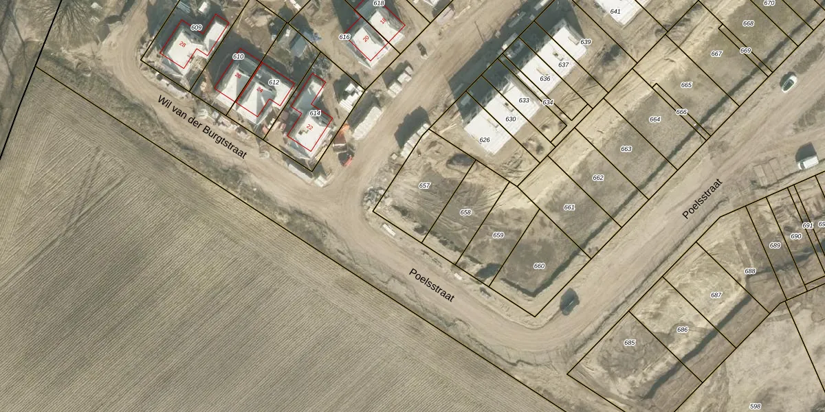 Poelsstraat 44 is gelegen op kadastraal perceel VLB00U657. Deze kadastrale aanduiding is uniek en wordt gebruikt door het Kadaster om eigendomsrechten en andere zakelijke rechten vast te leggen. Het perceel maakt onderdeel uit van de kadastrale gemeente Vierlingsbeek.