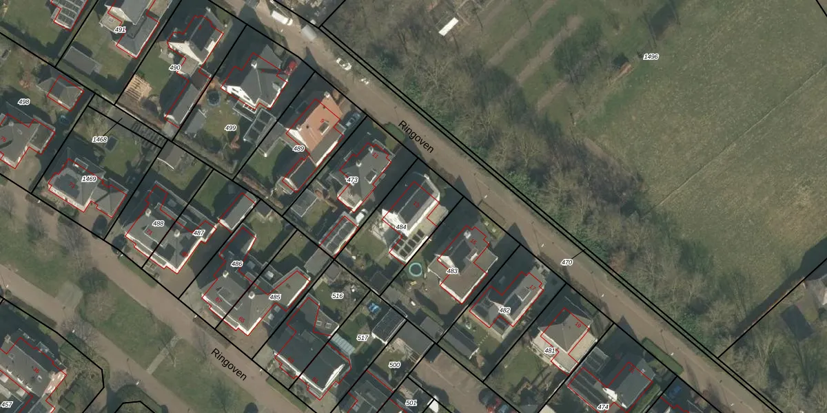 Het perceel waarop Ringoven 13 staat heeft een oppervlakte van 454 m². Dit is een groot perceel. De perceeloppervlakte wordt geregistreerd door het Kadaster. Gedetailleerde informatie over de maten van dit perceel kunt u vinden in het rapport Kadastrale kaart met maatvoering van Ringoven 13.
