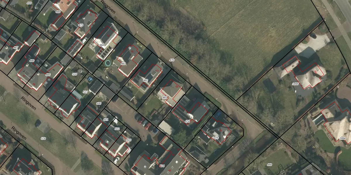 Het perceel waarop Ringoven 19 staat heeft een oppervlakte van 472 m². Dit is een groot perceel. De perceeloppervlakte wordt geregistreerd door het Kadaster. Gedetailleerde informatie over de maten van dit perceel kunt u vinden in het rapport Kadastrale kaart met maatvoering van Ringoven 19.