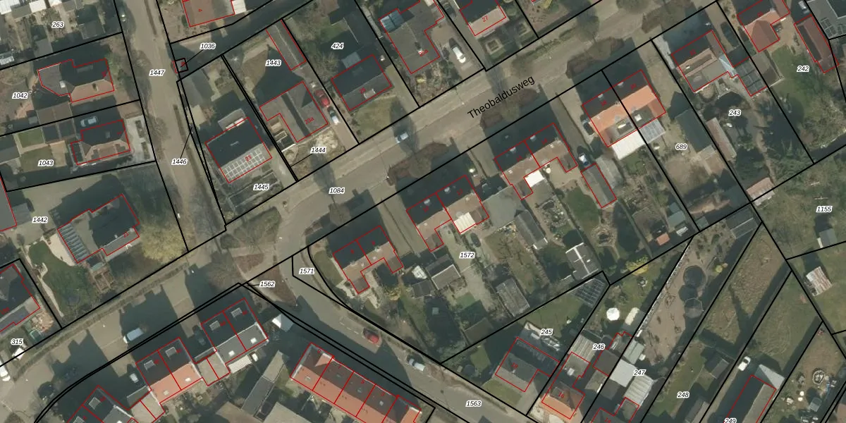 Theobaldusweg 10 is gelegen op kadastraal perceel VLB00I1572. Deze kadastrale aanduiding is uniek en wordt gebruikt door het Kadaster om eigendomsrechten en andere zakelijke rechten vast te leggen. Het perceel maakt onderdeel uit van de kadastrale gemeente Vierlingsbeek.