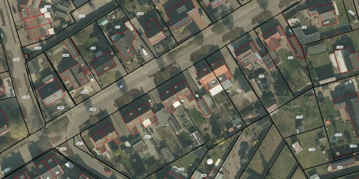 Theobaldusweg 16 is gelegen op kadastraal perceel VLB00I1572. Deze kadastrale aanduiding is uniek en wordt gebruikt door het Kadaster om eigendomsrechten en andere zakelijke rechten vast te leggen. Het perceel maakt onderdeel uit van de kadastrale gemeente Vierlingsbeek.