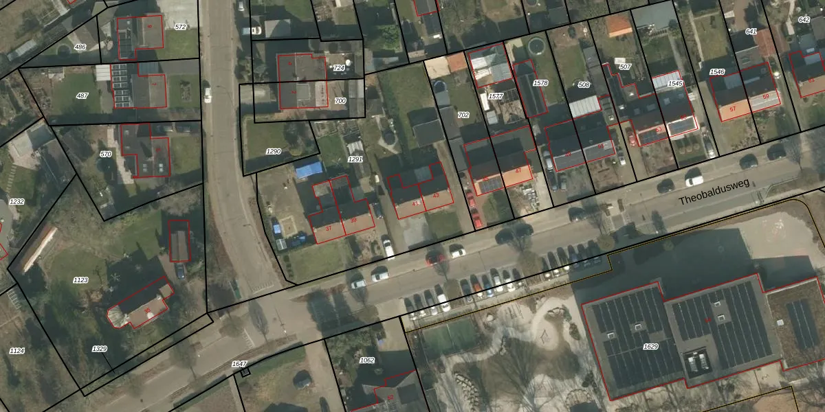 Theobaldusweg 41 is gelegen op kadastraal perceel VLB00I1291. Deze kadastrale aanduiding is uniek en wordt gebruikt door het Kadaster om eigendomsrechten en andere zakelijke rechten vast te leggen. Het perceel maakt onderdeel uit van de kadastrale gemeente Vierlingsbeek.