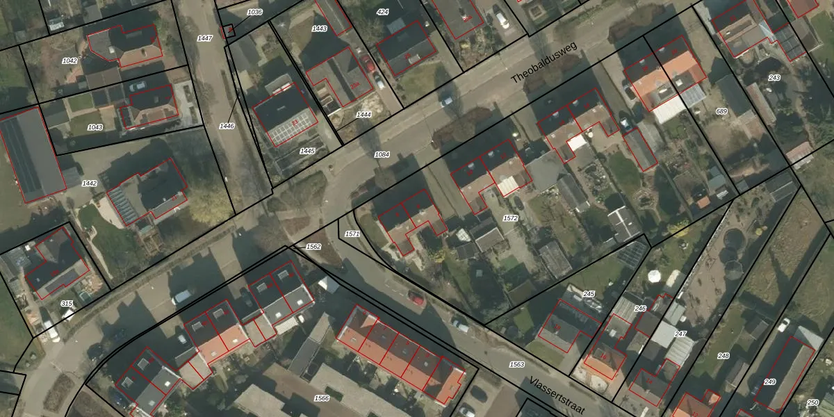 Theobaldusweg 8 is gelegen op kadastraal perceel VLB00I1572. Deze kadastrale aanduiding is uniek en wordt gebruikt door het Kadaster om eigendomsrechten en andere zakelijke rechten vast te leggen. Het perceel maakt onderdeel uit van de kadastrale gemeente Vierlingsbeek.