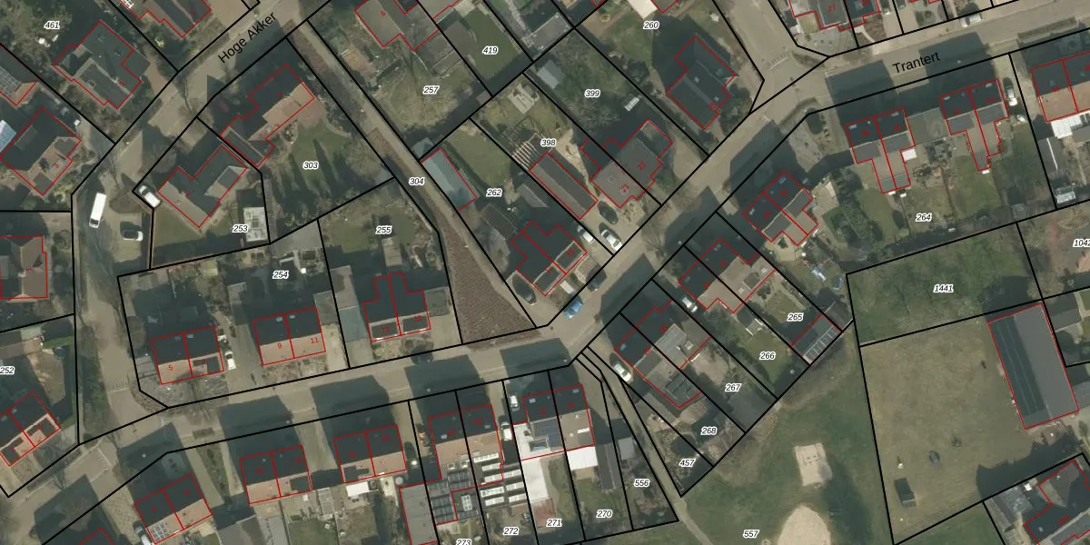 Het perceel waarop Trantert 17 staat heeft een oppervlakte van 586 m². Dit is een groot perceel. De perceeloppervlakte wordt geregistreerd door het Kadaster. Gedetailleerde informatie over de maten van dit perceel kunt u vinden in het rapport Kadastrale kaart met maatvoering van Trantert 17.