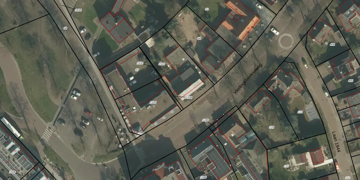 Vierlingsbeekseweg 1-b is gelegen op kadastraal perceel VLB00I1533. Deze kadastrale aanduiding is uniek en wordt gebruikt door het Kadaster om eigendomsrechten en andere zakelijke rechten vast te leggen. Het perceel maakt onderdeel uit van de kadastrale gemeente Vierlingsbeek.