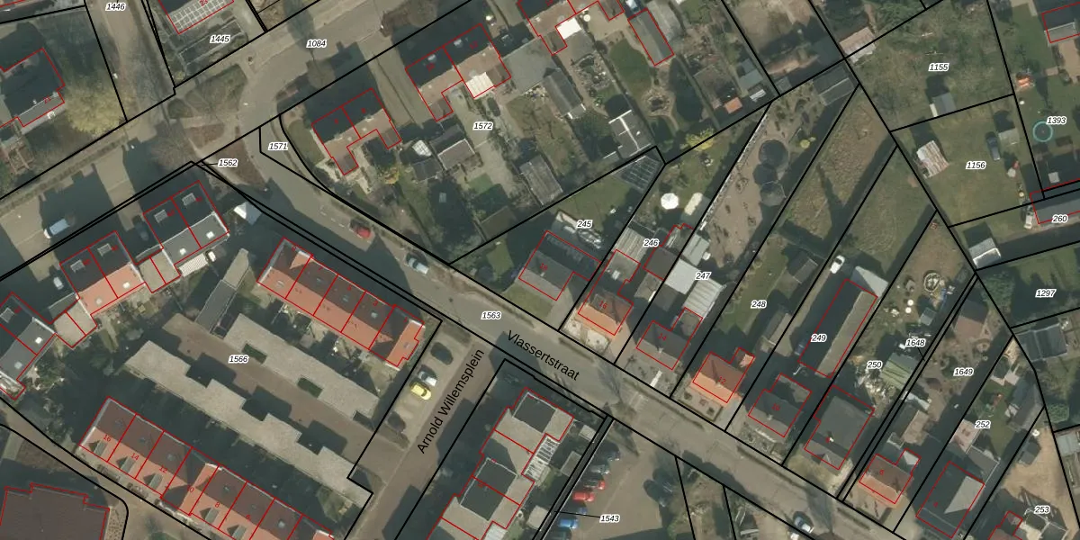Vlassertstraat 18 is gelegen op kadastraal perceel VLB00I245. Deze kadastrale aanduiding is uniek en wordt gebruikt door het Kadaster om eigendomsrechten en andere zakelijke rechten vast te leggen. Het perceel maakt onderdeel uit van de kadastrale gemeente Vierlingsbeek.
