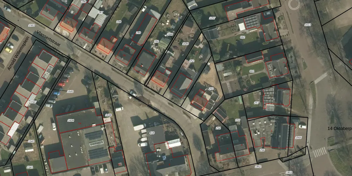 Het perceel waarop Vlassertstraat 4 staat heeft een oppervlakte van 475 m². Dit is een groot perceel. De perceeloppervlakte wordt geregistreerd door het Kadaster. Gedetailleerde informatie over de maten van dit perceel kunt u vinden in het rapport Kadastrale kaart met maatvoering van Vlassertstraat 4.