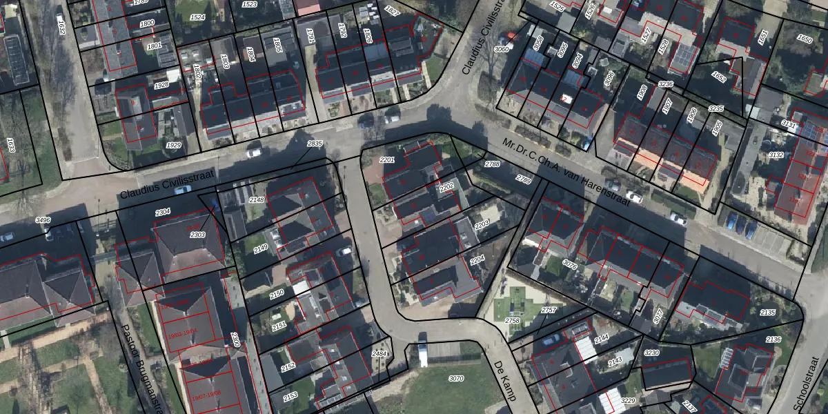 Gebruik de zoekbalk of klik op een perceel voor informatie over de adressen binnen dit perceel.