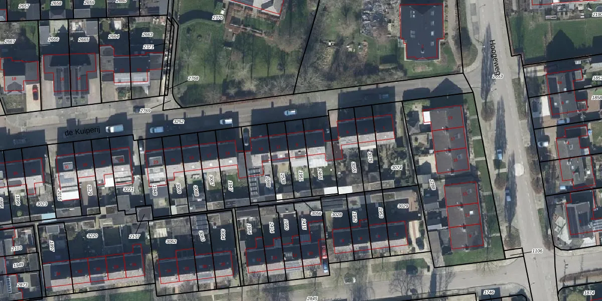 Het perceel waarop de Kuiperij 9 staat heeft een oppervlakte van 154 m². Dit is een middelgroot perceel. De perceeloppervlakte wordt geregistreerd door het Kadaster. Gedetailleerde informatie over de maten van dit perceel kunt u vinden in het rapport Kadastrale kaart met maatvoering van de Kuiperij 9.