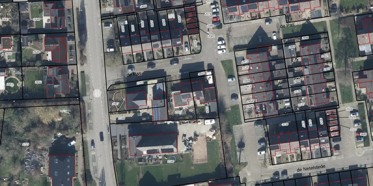 Het perceel waarop de Pas 2-a staat heeft een oppervlakte van 306 m². Dit is een groot perceel. De perceeloppervlakte wordt geregistreerd door het Kadaster. Gedetailleerde informatie over de maten van dit perceel kunt u vinden in het rapport Kadastrale kaart met maatvoering van de Pas 2-a.