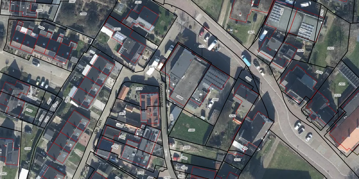 Het perceel waarop Dorpsplein 2 staat heeft een oppervlakte van 563 m². Dit is een groot perceel. De perceeloppervlakte wordt geregistreerd door het Kadaster. Gedetailleerde informatie over de maten van dit perceel kunt u vinden in het rapport Kadastrale kaart met maatvoering van Dorpsplein 2.