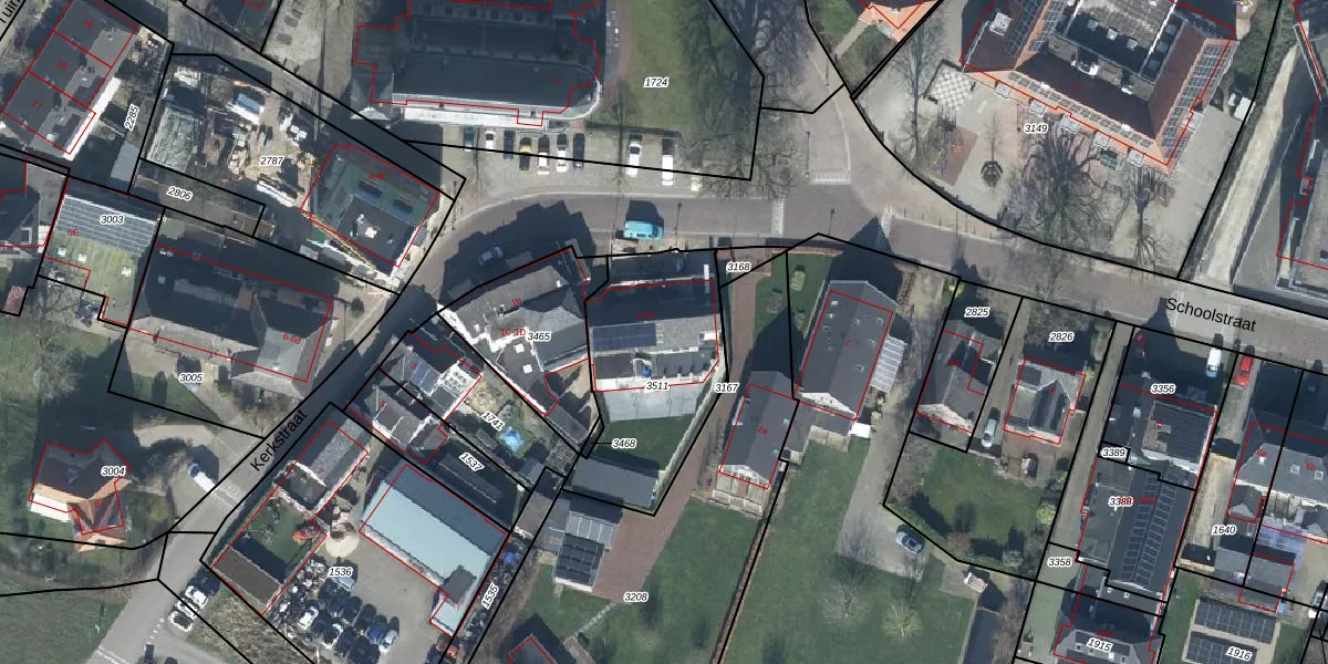 Het perceel waarop Kerkstraat 1-02 staat heeft een oppervlakte van 672 m². Dit is een groot perceel. De perceeloppervlakte wordt geregistreerd door het Kadaster. Gedetailleerde informatie over de maten van dit perceel kunt u vinden in het rapport Kadastrale kaart met maatvoering van Kerkstraat 1-02.