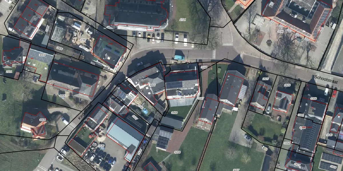 Het perceel waarop Kerkstraat 1-03 staat heeft een oppervlakte van 672 m². Dit is een groot perceel. De perceeloppervlakte wordt geregistreerd door het Kadaster. Gedetailleerde informatie over de maten van dit perceel kunt u vinden in het rapport Kadastrale kaart met maatvoering van Kerkstraat 1-03.