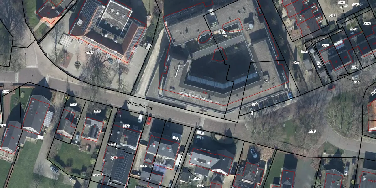 Het perceel waarop Schoolstraat 45 staat heeft een oppervlakte van 4670 m². Dit is een zeer groot perceel. De perceeloppervlakte wordt geregistreerd door het Kadaster. Gedetailleerde informatie over de maten van dit perceel kunt u vinden in het rapport Kadastrale kaart met maatvoering van Schoolstraat 45.