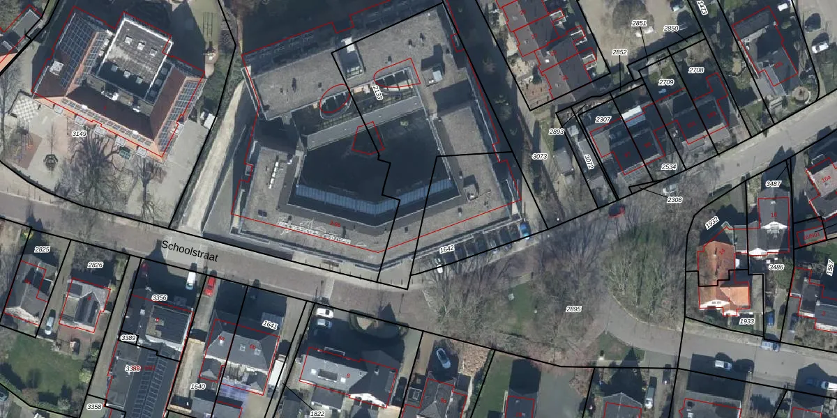 Het perceel waarop Schoolstraat 55 staat heeft een oppervlakte van 1265 m². Dit is een zeer groot perceel. De perceeloppervlakte wordt geregistreerd door het Kadaster. Gedetailleerde informatie over de maten van dit perceel kunt u vinden in het rapport Kadastrale kaart met maatvoering van Schoolstraat 55.