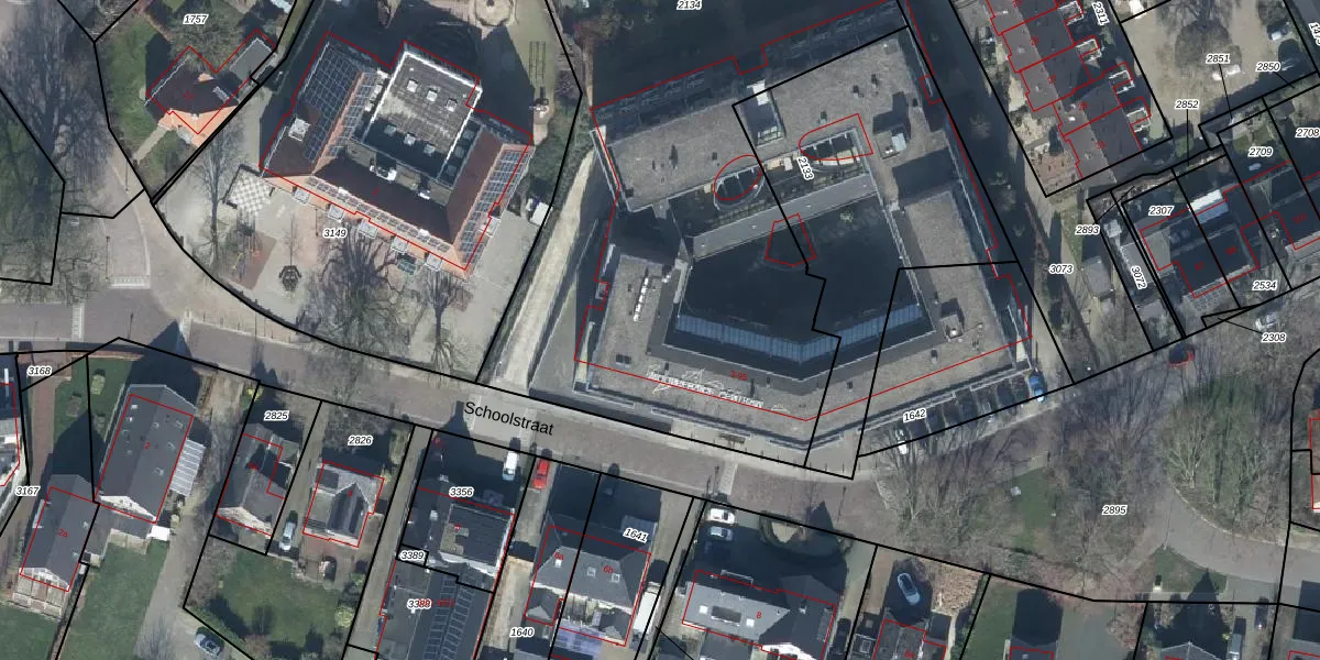 Het perceel waarop Schoolstraat 79 staat heeft een oppervlakte van 4670 m². Dit is een zeer groot perceel. De perceeloppervlakte wordt geregistreerd door het Kadaster. Gedetailleerde informatie over de maten van dit perceel kunt u vinden in het rapport Kadastrale kaart met maatvoering van Schoolstraat 79.
