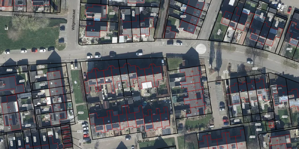 Wilgenstraat 16 is gelegen op kadastraal perceel PND00B3346. Deze kadastrale aanduiding is uniek en wordt gebruikt door het Kadaster om eigendomsrechten en andere zakelijke rechten vast te leggen. Het perceel maakt onderdeel uit van de kadastrale gemeente Pannerden.