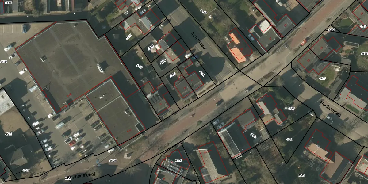 Het adres ligt op het perceel HDN01-G-2291, dat zich in de kadastrale gemeente Helden bevindt. Het perceel is 240 m² groot. Dat is kleiner dan de gemiddelde perceeloppervlakte in Helden, dat op 4697,67 m² ligt. Het grootste perceel in de kadastrale gemeente is 28,9 ha. Het kleinste perceel heeft een oppervlakte van 0 m². Dit is het enige adres dat aanwezig is op het perceel. De laatste wijziging in het de Basisregistratie Kadaster (BRK) was op 10-09-2008.