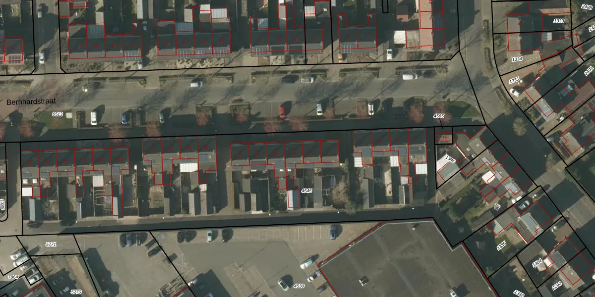 Het perceel waarop Bernhardstraat 13 staat heeft een oppervlakte van 5000 m². Dit is een zeer groot perceel. De perceeloppervlakte wordt geregistreerd door het Kadaster. Gedetailleerde informatie over de maten van dit perceel kunt u vinden in het rapport Kadastrale kaart met maatvoering van Bernhardstraat 13.