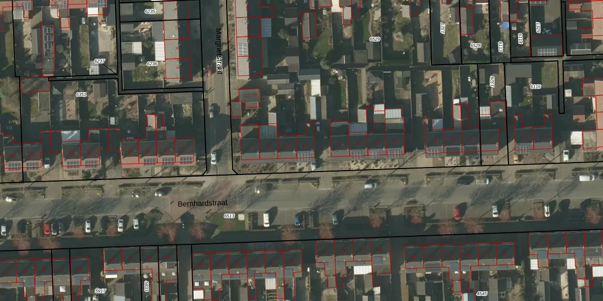 Het perceel waarop Bernhardstraat 24 staat heeft een oppervlakte van 5235 m². Dit is een zeer groot perceel. De perceeloppervlakte wordt geregistreerd door het Kadaster. Gedetailleerde informatie over de maten van dit perceel kunt u vinden in het rapport Kadastrale kaart met maatvoering van Bernhardstraat 24.
