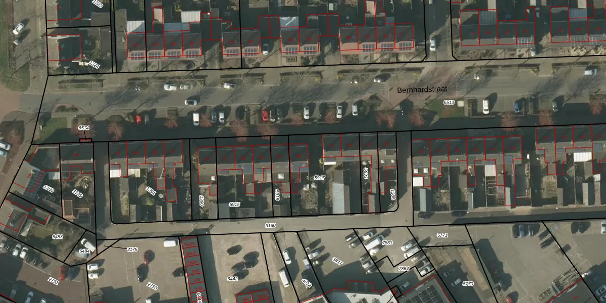Het perceel waarop Bernhardstraat 49 staat heeft een oppervlakte van 626 m². Dit is een groot perceel. De perceeloppervlakte wordt geregistreerd door het Kadaster. Gedetailleerde informatie over de maten van dit perceel kunt u vinden in het rapport Kadastrale kaart met maatvoering van Bernhardstraat 49.