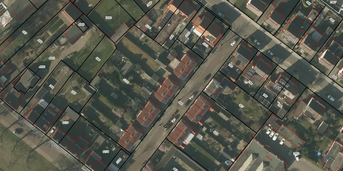 Het perceel waarop Dwarsstraat 5 staat heeft een oppervlakte van 2817 m². Dit is een zeer groot perceel. De perceeloppervlakte wordt geregistreerd door het Kadaster. Gedetailleerde informatie over de maten van dit perceel kunt u vinden in het rapport Kadastrale kaart met maatvoering van Dwarsstraat 5.