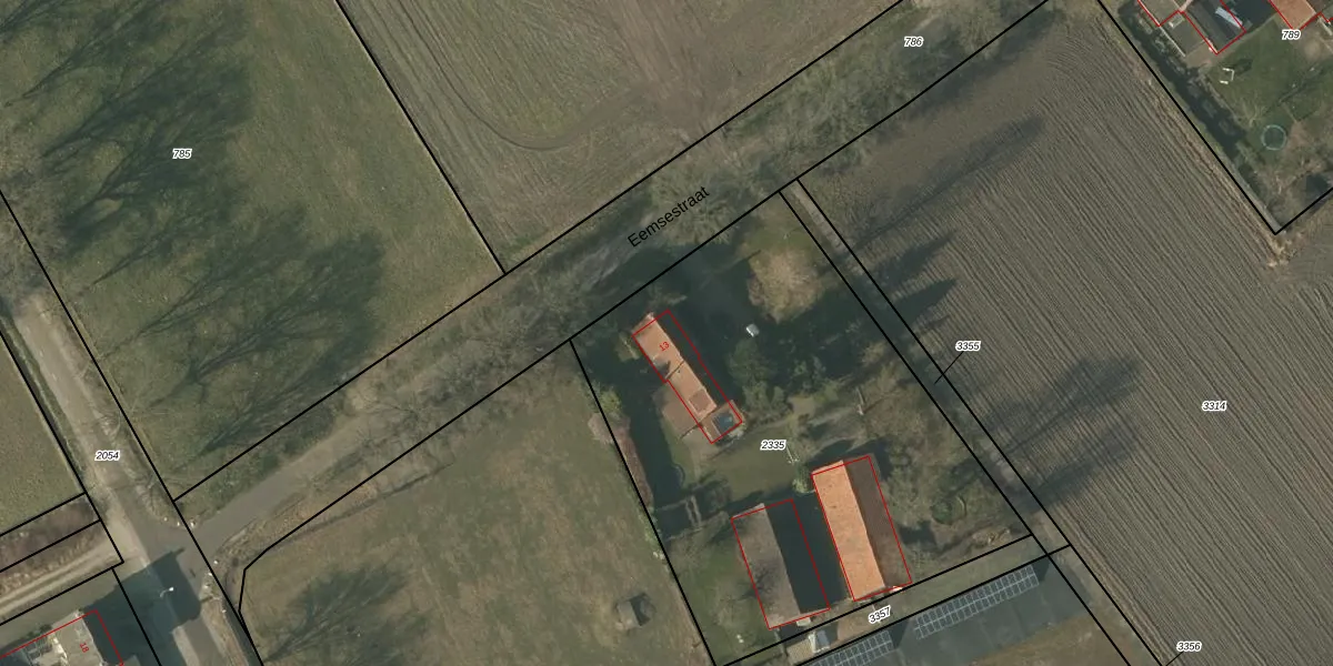 Het perceel waarop Eemsestraat 13 staat heeft een oppervlakte van 2634 m². Dit is een zeer groot perceel. De perceeloppervlakte wordt geregistreerd door het Kadaster. Gedetailleerde informatie over de maten van dit perceel kunt u vinden in het rapport Kadastrale kaart met maatvoering van Eemsestraat 13.